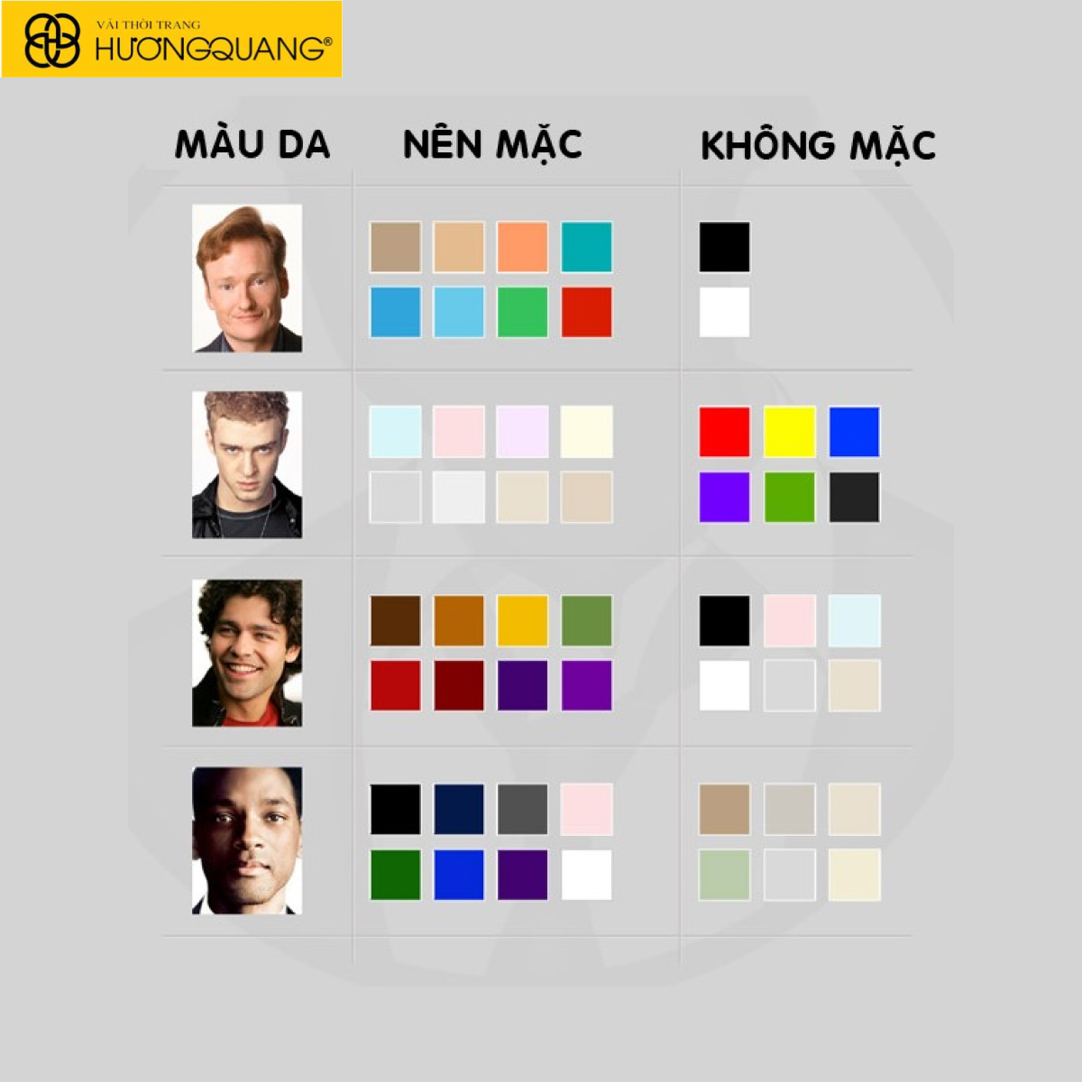 Người có làn da ngăm nên ưu tiên vải màu có độ đậm (xanh pastel, đậm ,hồng đất nhạt) những gam màu này giúp da trông sáng và nổi bật hơn. Tránh chọn các màu quá nhạt vì có thể khiến làn da thiếu sức sống.