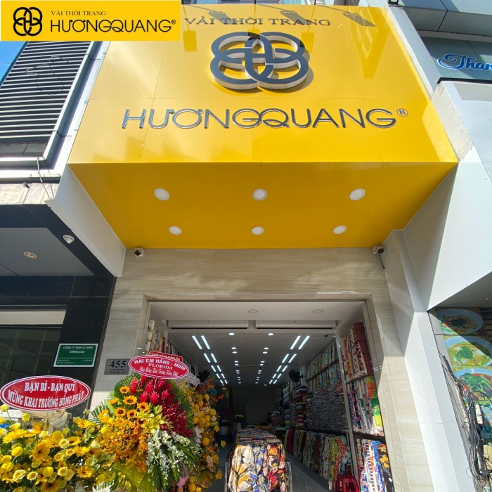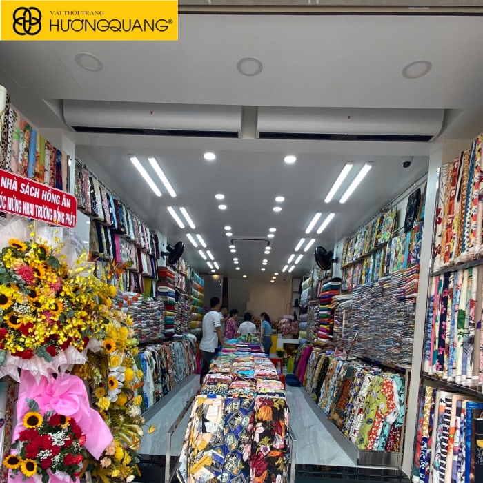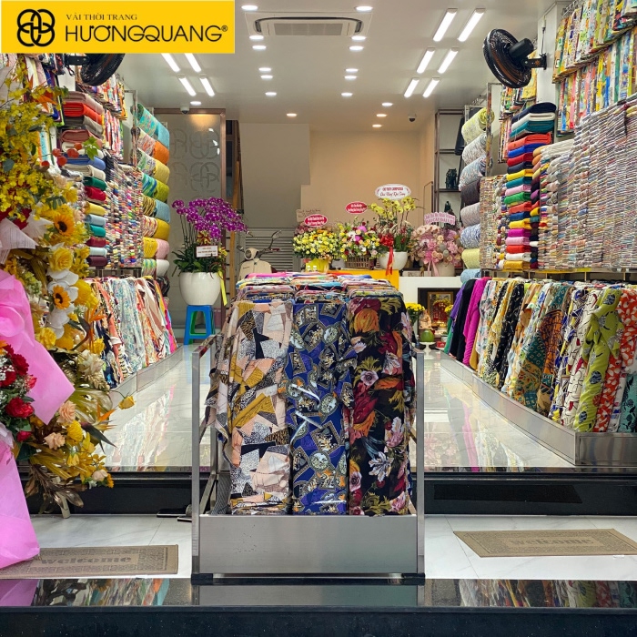 Hương Quang còn hỗ trợ khách in logo, phối mẫu theo yêu cầu – phù hợp các xưởng may đồng phục, áo dài, thời trang thiết kế.