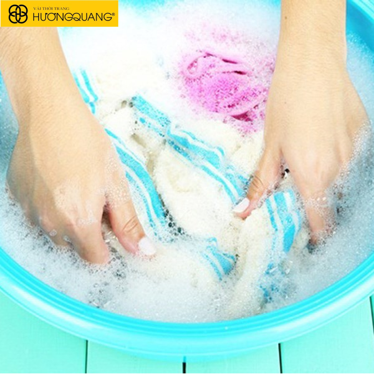 - Xả sạch vải bằng nước lạnh nhiều lần cho đến khi hết xà phòng.