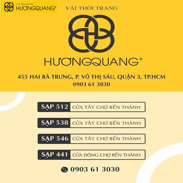 • Uy tín lâu năm: Ra đời từ năm 1989 tại chợ Bến Thành, Vải Thời Trang Hương Quang đã khẳng định được vị thế của mình trên thị trường vải vóc TP.HCM.