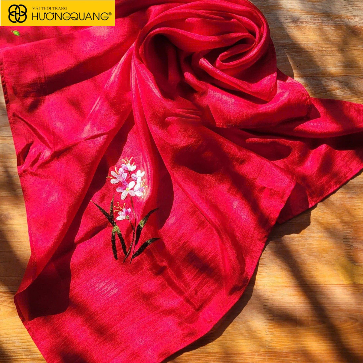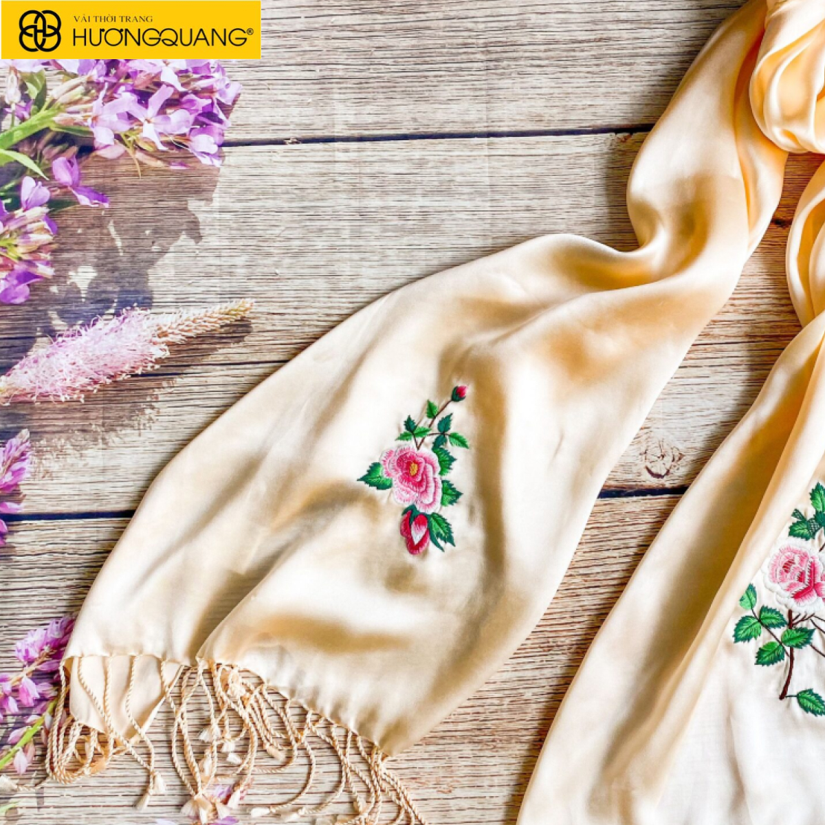 Hương Quang sử dụng nguồn lụa tơ tằm cao cấp, nhập khẩu hoặc được tuyển chọn kỹ lưỡng trong nước; lụa thêu tay tại Hương Quang có độ mềm mại, màu sắc tươi sáng và kết cấu vững chắc – không bị rách hay phai nhanh