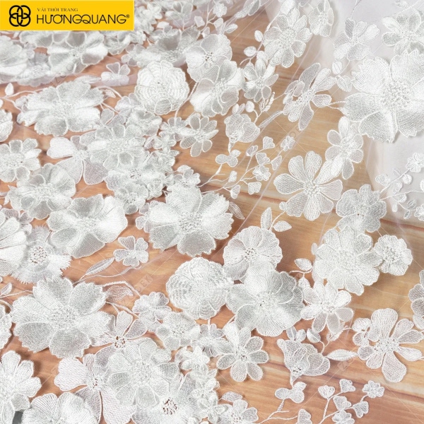 Vải thêu ren nổi 3D cao cấp