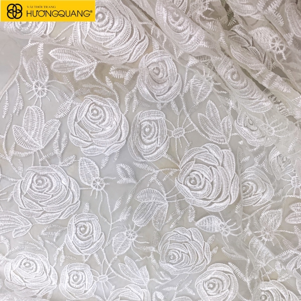 Hương Quang cung cấp nhiều dòng vải thêu ren cao cấp – như ren hoa 3D, ren kim tuyến, ren lưới thêu nổi – kèm chính sách bảo hành, hỗ trợ may và giao hàng toàn quốc.