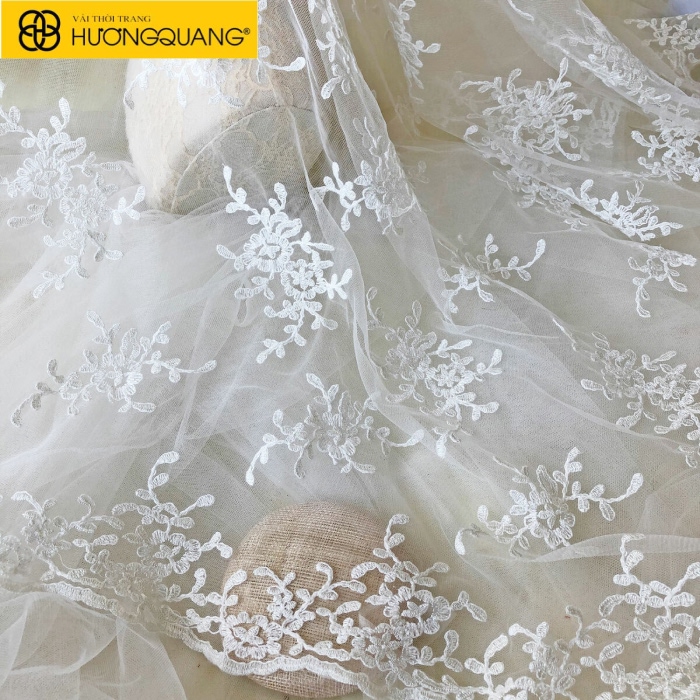 Tại Hương Quang, bạn sẽ tìm thấy những mẫu vải ren thêu được thêu thủ công tỉ mỉ, với họa tiết độc đáo và chất liệu cao cấp, phù hợp cho các thiết kế thời trang cao cấp.